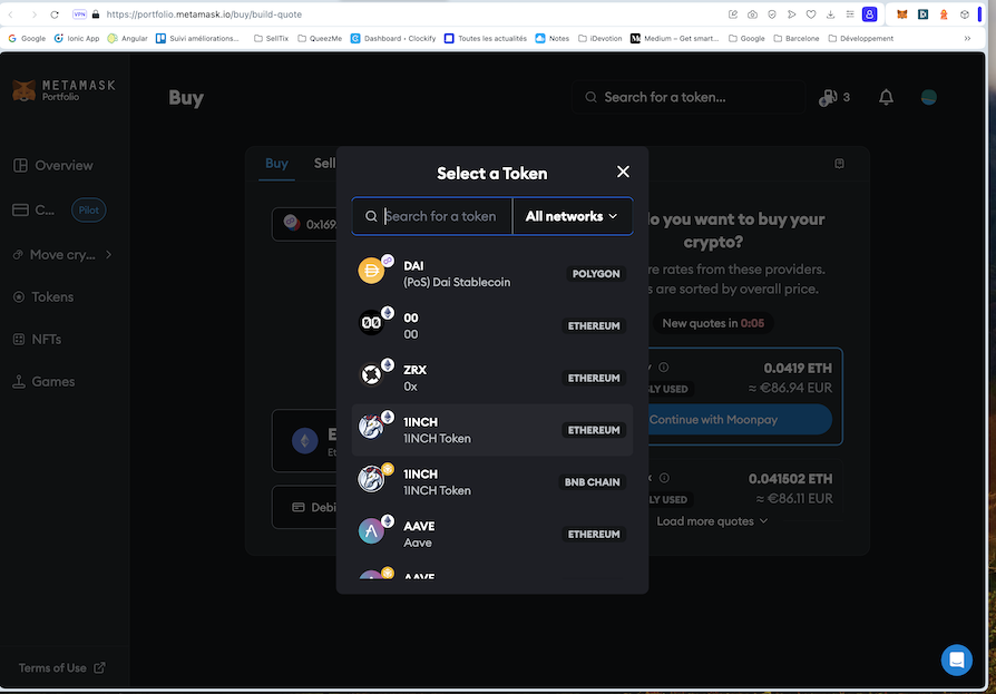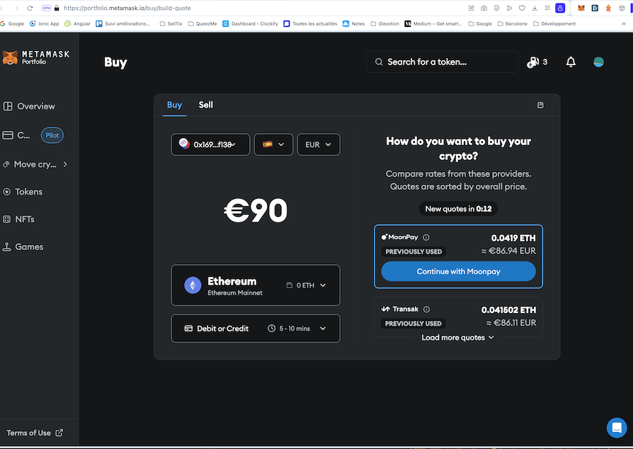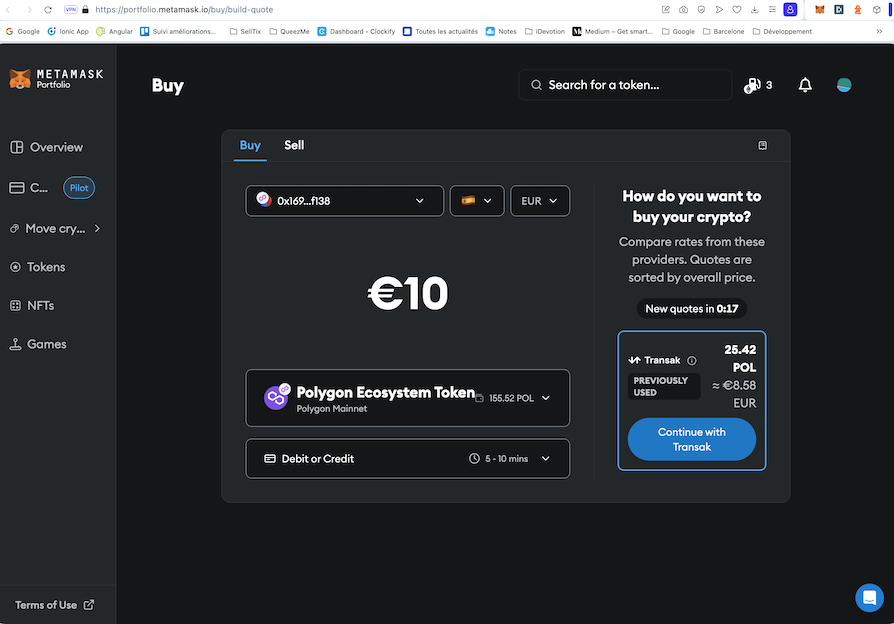 Metamask permet d'acheter du POL avec votre carte bancaire. Pour cela, il vous suffit de cliquer sur le bouton Acheter